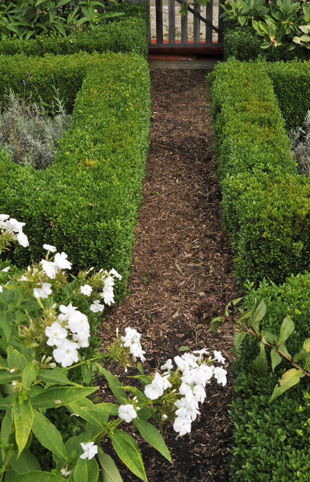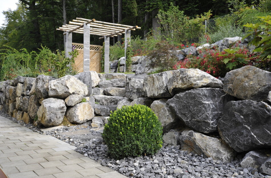 Pergolas, Mauern, Moorbeete und Spielplätze.